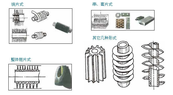 1、繞片式系列:是銅帶、鋼帶、鋁帶在繞片機(jī)的作用下,直接在基管上纏繞而成,分皺褶形和平直形。皺褶的存在既增加了翅片與管子間的接觸面積,又增加了空氣流過時(shí)的擾動性,因此提高了傳熱系數(shù)。