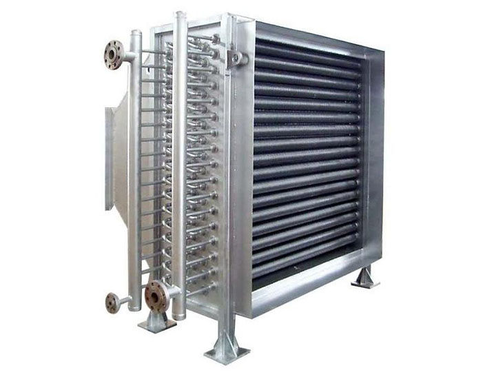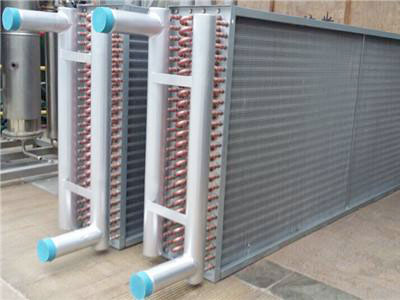 翅片式換熱器因采用機械繞片,散熱翅片與散熱管接觸面大而緊,傳熱性能良好、穩(wěn)定,空氣通過阻力小,蒸氣或熱水流經(jīng)鋼管管內(nèi),熱量通過緊繞在鋼管上翅片傳給經(jīng)過翅片間的空氣,達到加熱和冷卻空氣的作用。